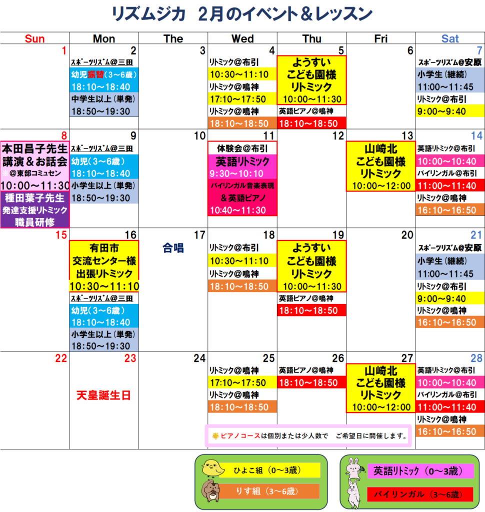 和歌山市のリトミック・英語リトミック・ピアノ・スポーツリズムトレーニング教室の【リズムジカ】です。